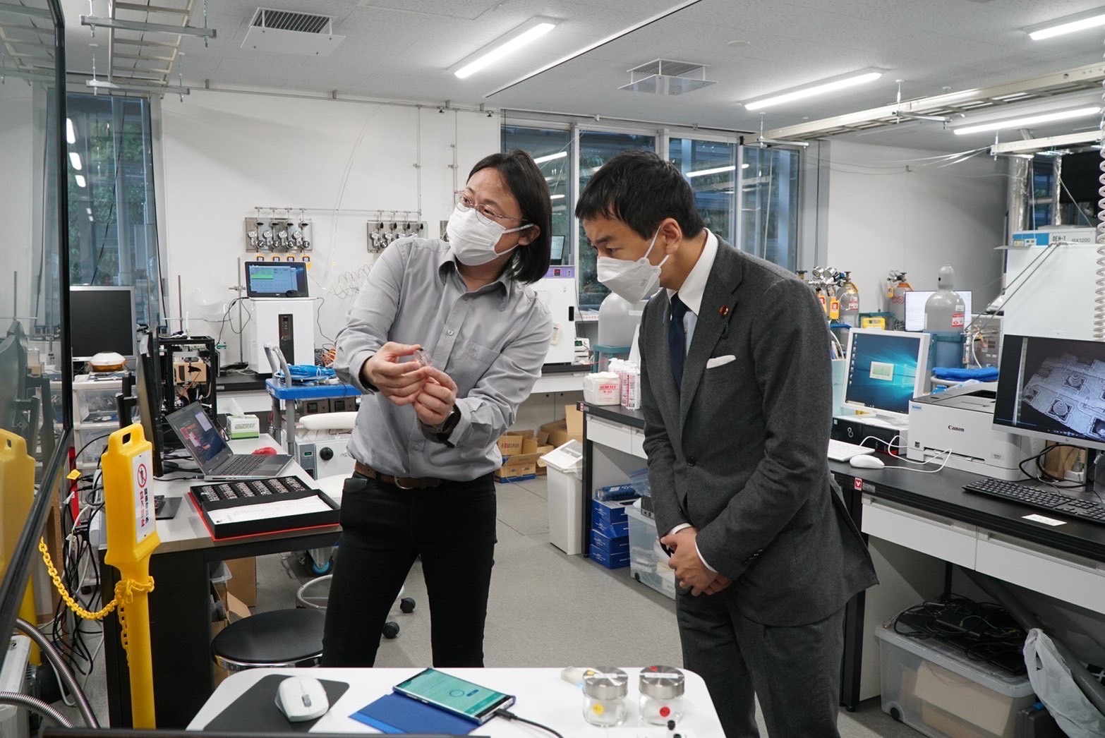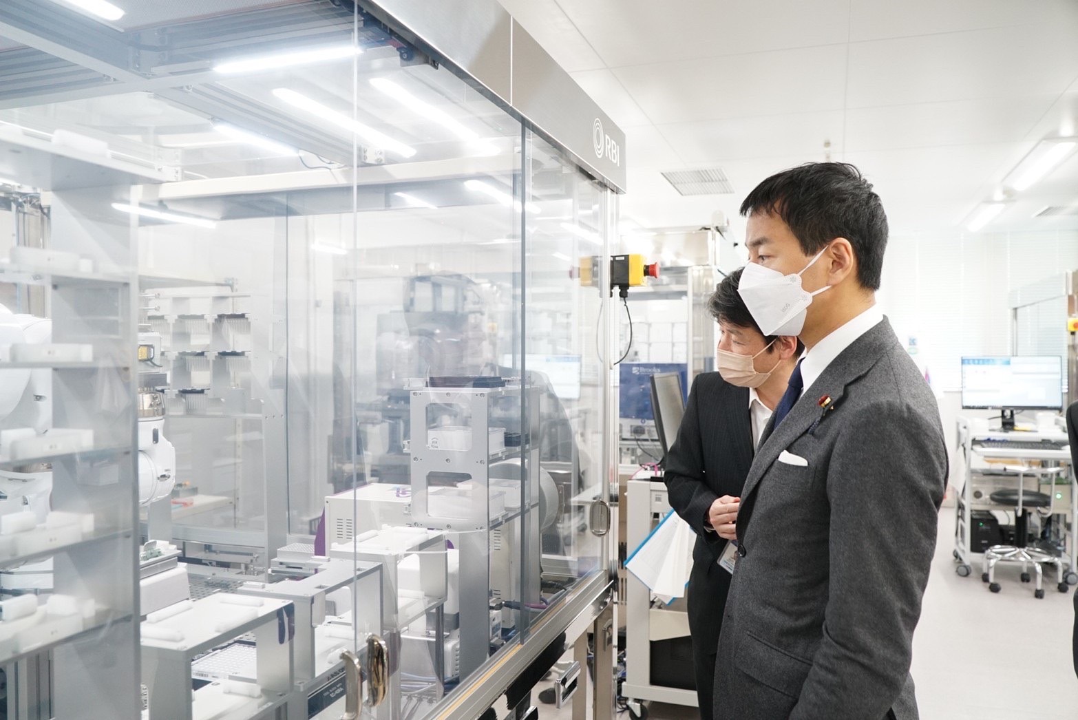 高細精医療イノベーション棟にて、実験自動化の人型ロボット「まほろ」の視察等をさせて頂きました。