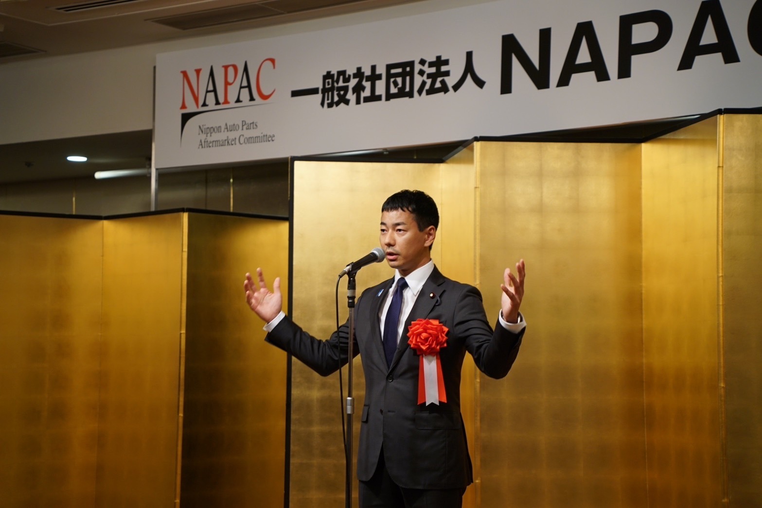 夕方には、グランドプリンスホテル高輪にて、NAPAC(日本自動車用品・部品アフターマーケット振興会)記念懇親会に参加。ご挨拶をさせて頂きました。