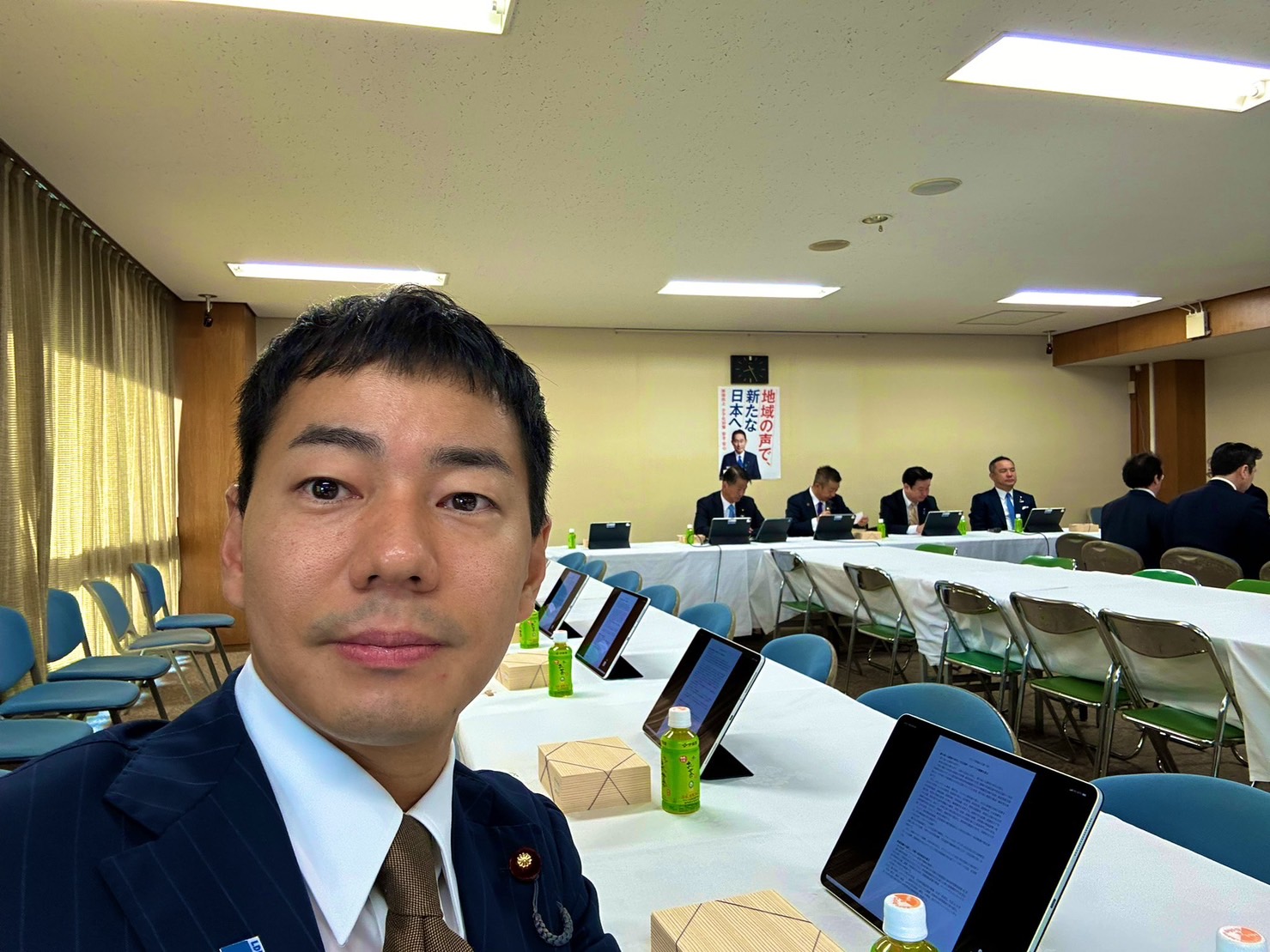 会館にて政務。