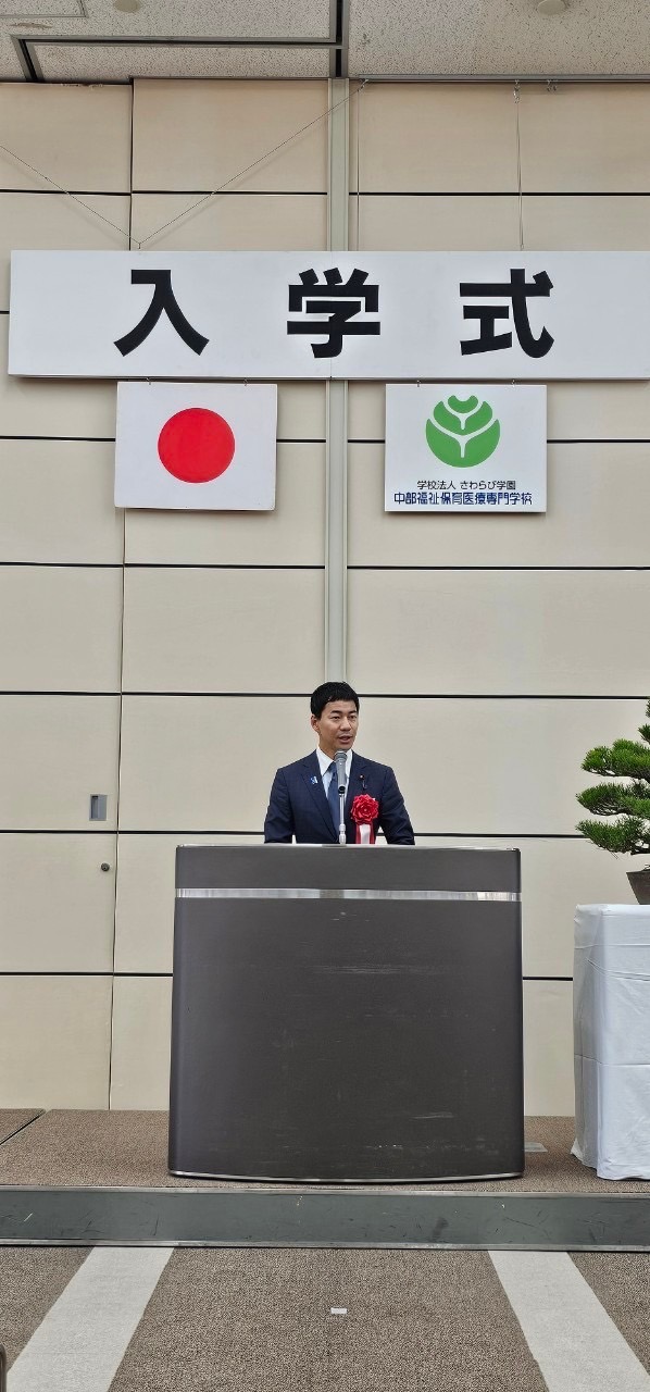 また、さわらび学園 中部福祉保育医療専門学校 入学式に参加。祝辞を述べさせていただきました。