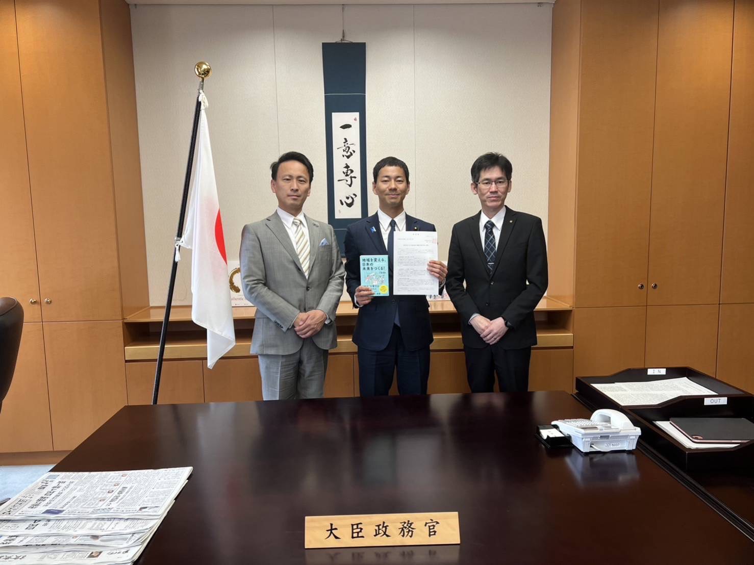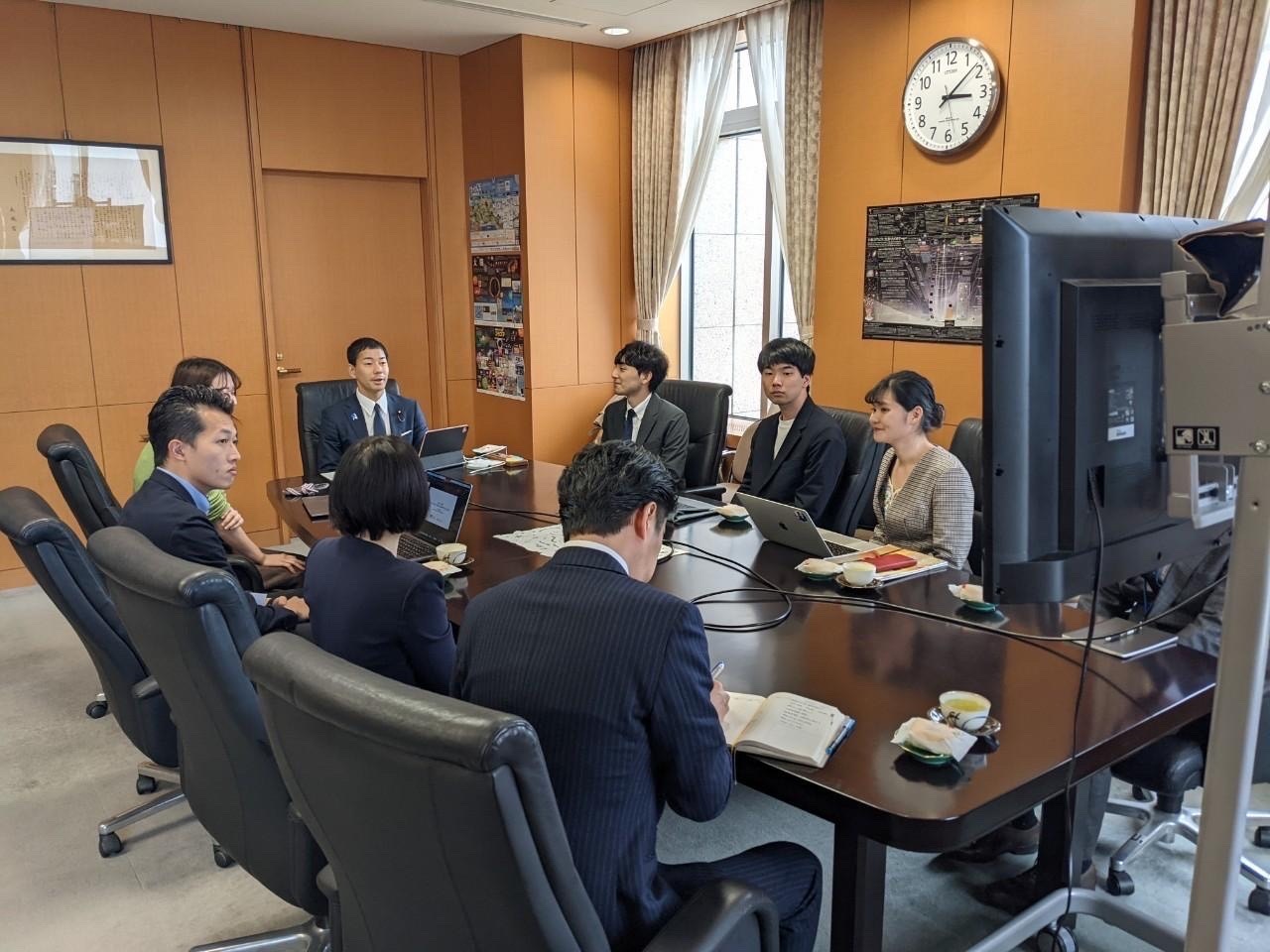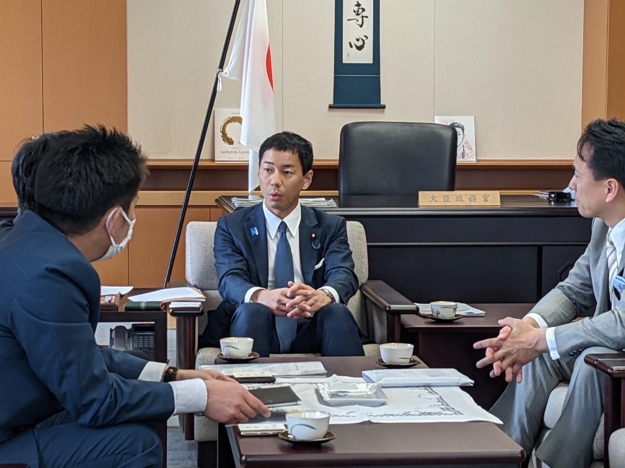 午後からは、政務官室にて社会福祉法人 愛生館 理事長 小林 清彦様、全国福祉高等学校長会 理事長 髙橋 秀親様、全国福祉高等学校長会 事務局長 真田 龍一様にお越しいただき、意見交換をいたしました。