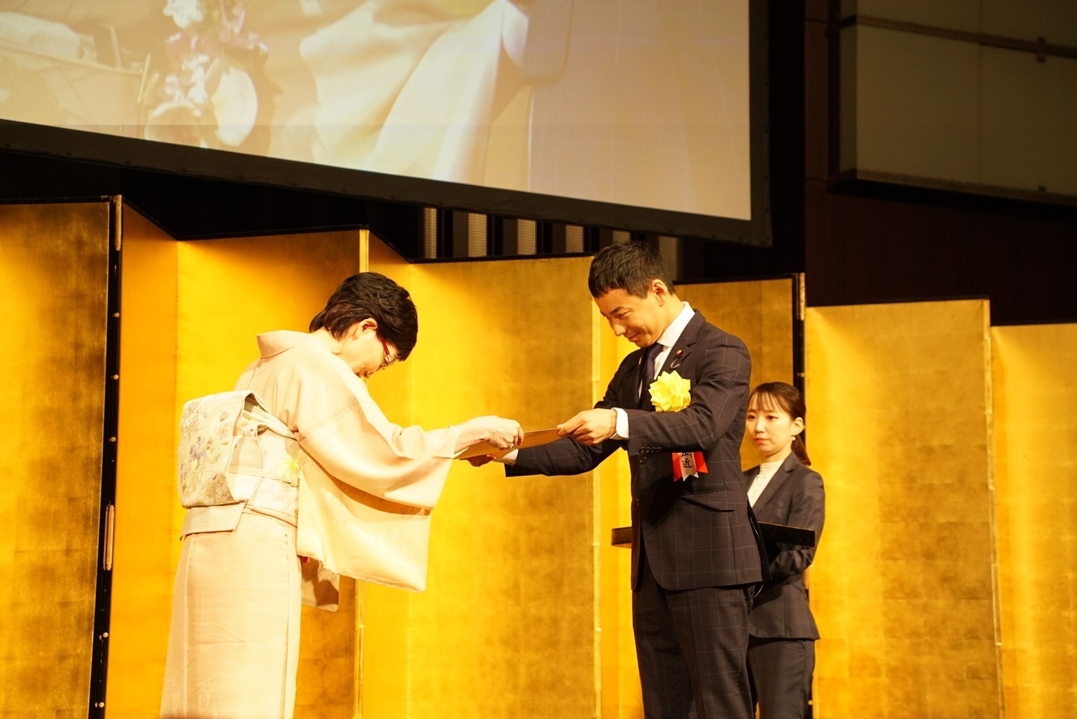 文部科学大臣賞の松井玉箏氏に賞状を授与させていただきました。